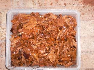 mit Buchenlaub auf. Danach kommt die Kiste für 2 Tage in den Keller, um dann in
